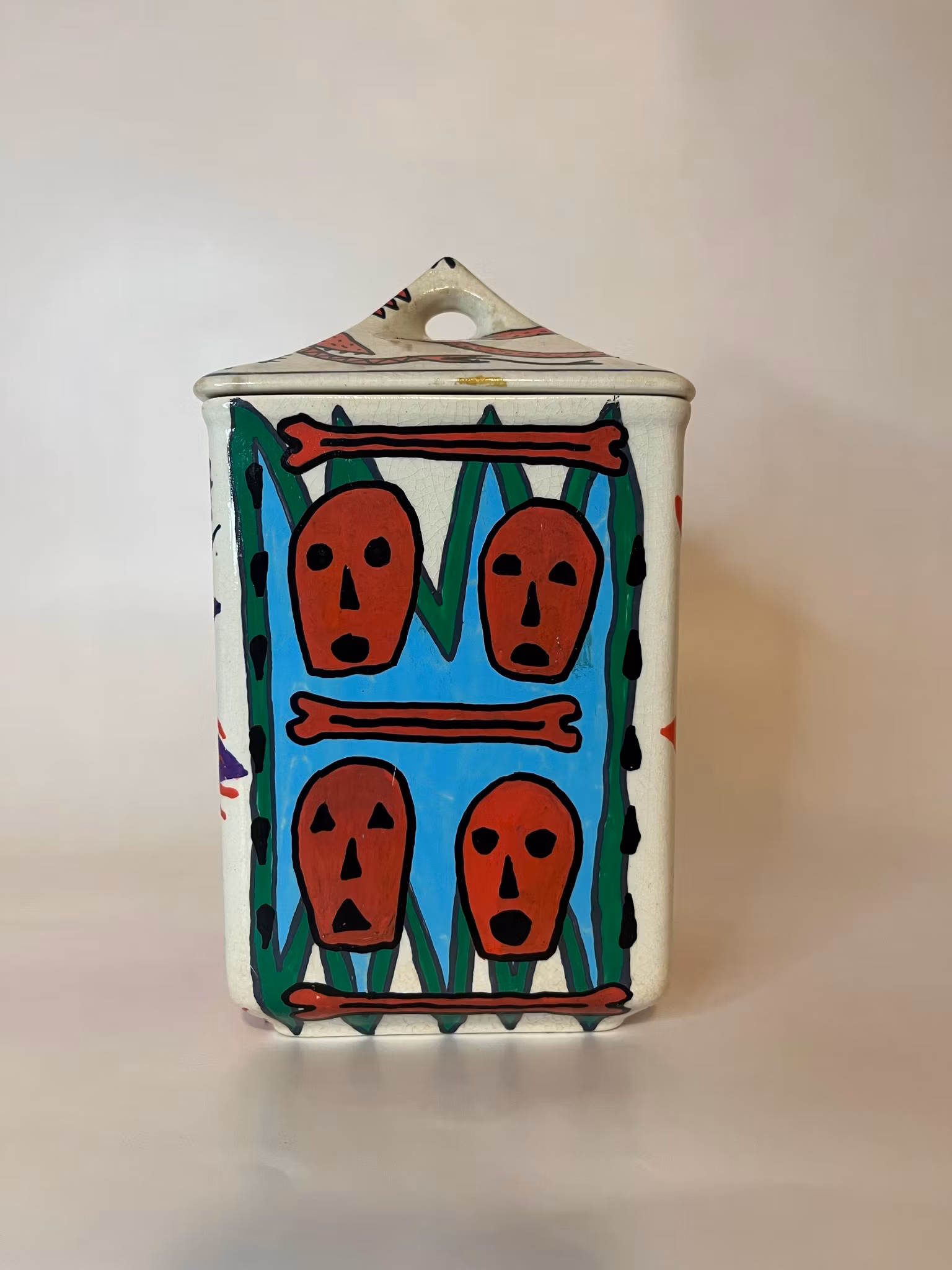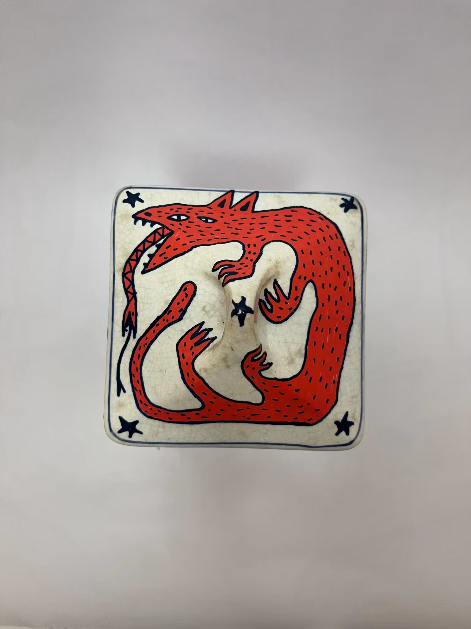 burk köpt på secondhand, ritad med poscapennor, bränd i ugn, lackad med porslinslack o bränd i ugn igen
